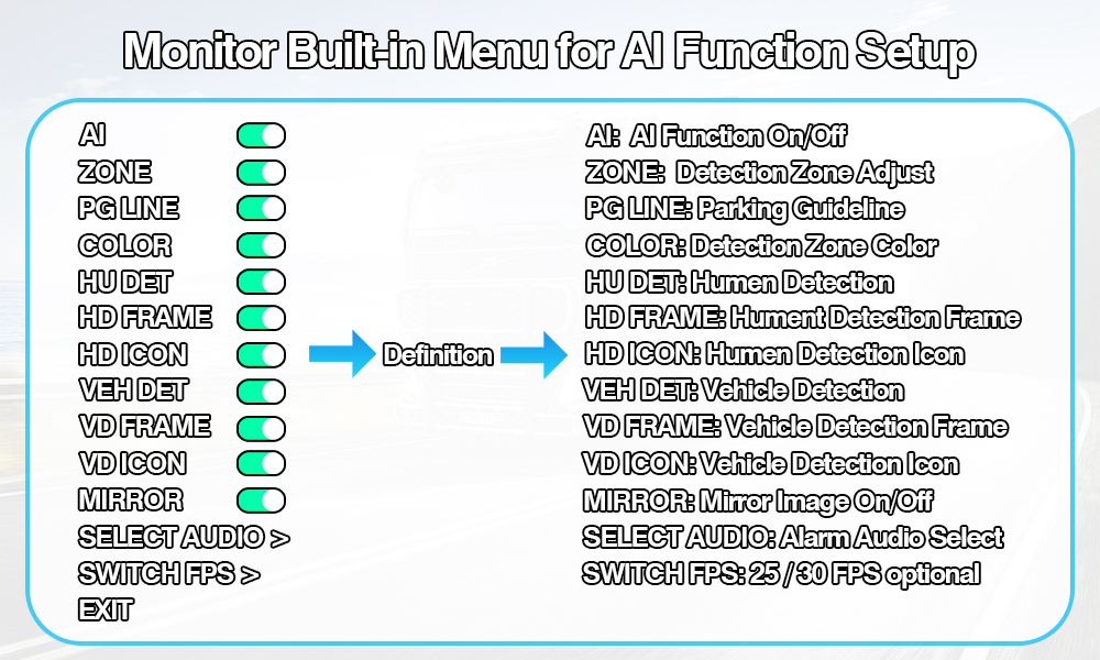 7 Inch HD Car Monitor AI Pedestrian Detection BSD System