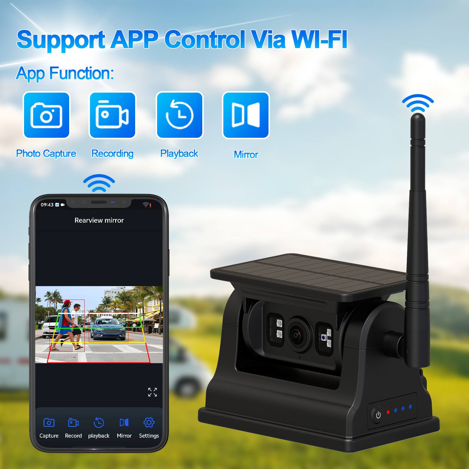Carleader AI Deprehensio Solaris Powered Rechargeable inversando WIFI Camera cum base Magnetica, nulla wiring requiritur, facilem institutionem cum basi magnetica, camera solaris powered wireless praeposteri aedificata in magna capacitate 10500mAh rechargeable eu altilium et munus visionis nocturnae habet, etiam energia solaris, industria salutaris et tutelae environmentalis trahi potest. Camera subsidium AI munus deprehendendi, pedestrem et vehiculum deprehendere potest, etiam support coniungere cum cellphone per WIFI, utentem capere imagines, recordum video et playback, etiam AI calibrationem accommodes, etc. Haec camera optima est optio vehiculorum securitatis magna apparatu armorum ad vehiculum tuum tuto depellere.