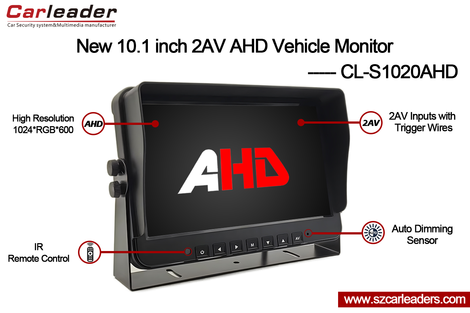 Carleader10.1 Inch 2CH AHD Inputs vehiculum Tergum Monitoridonea aliquet, buses, vans, RVs, scholae buses, machinae agriculturae, machinae constructiones, apparatum sanitationum, etc.